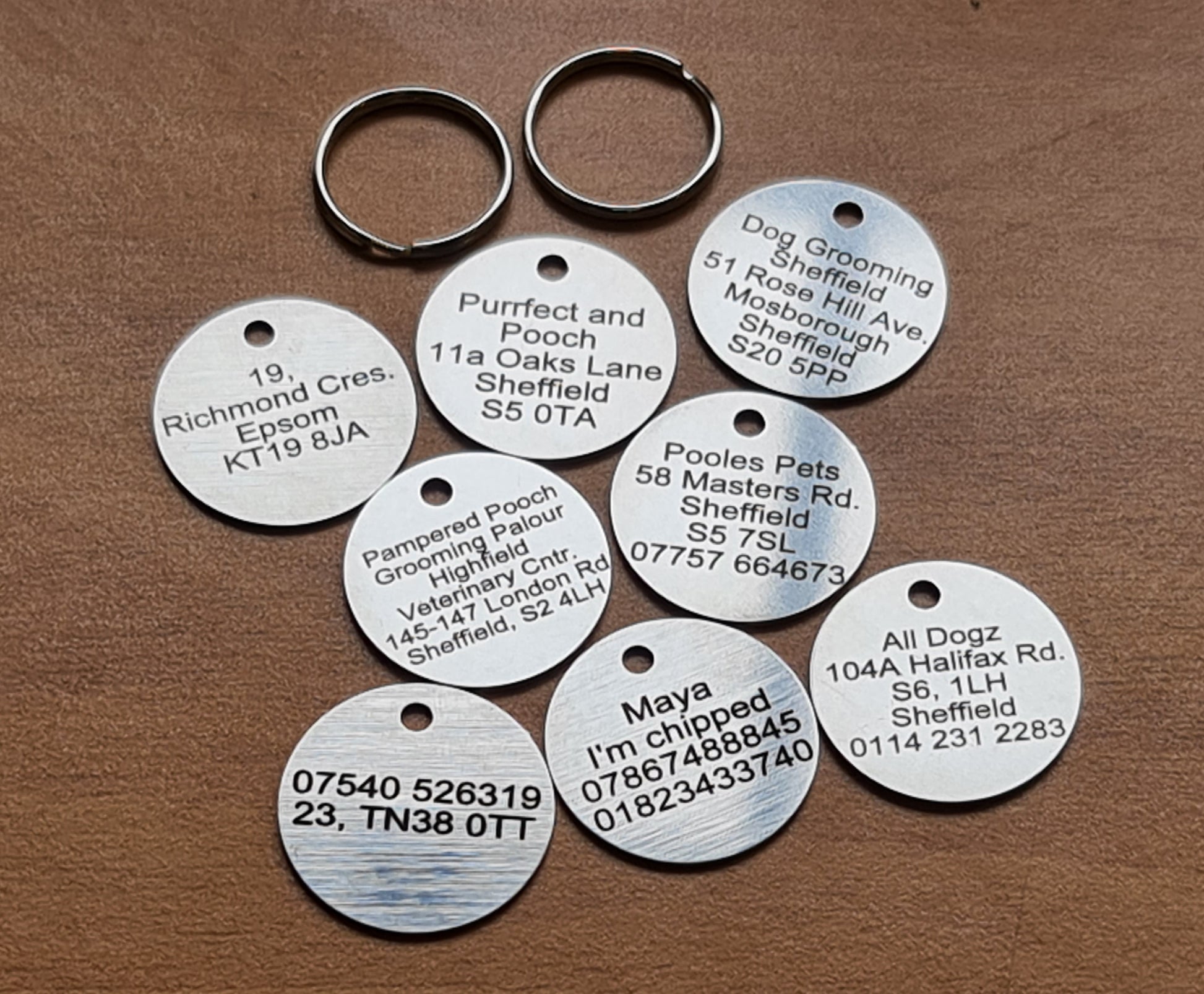 Each dog tag is supplied with a durable split ring. When walking please ensure that dog lead is clipped to the D ring on the collar and not on the split ring.