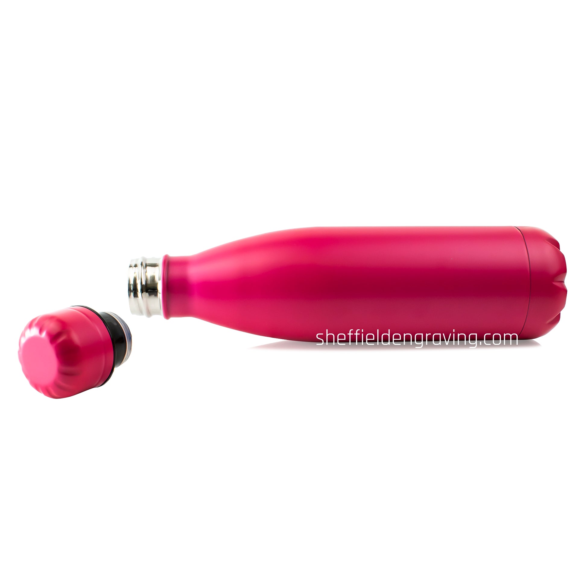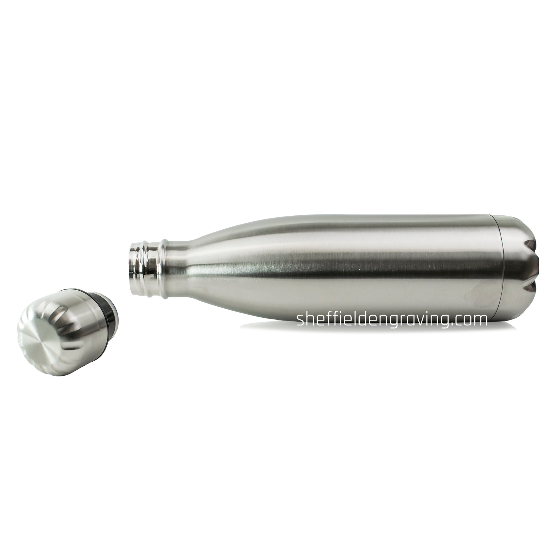 These thermal bottles are made of stainless steel with double walled vacuum technology and are anodised / powder coated on the exteriors. We can engrave any text in any standard font both VERTICALLY or HORIZONTALLY with full 360º rotation around the bottle.